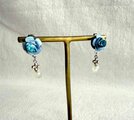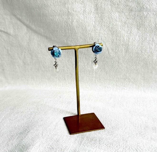 ヴィンテージのブルーフラワーパーツを使用して作成したピアスです。