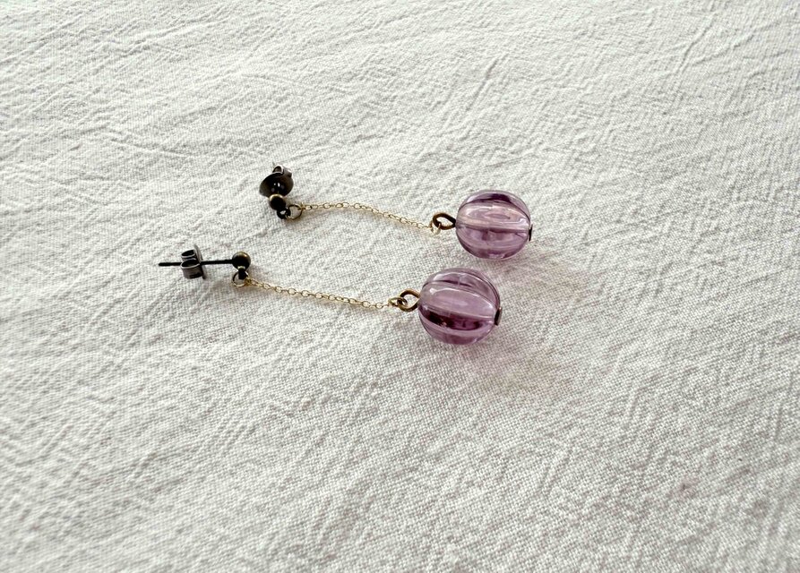 揺れるピアス。パープルの色の透ける感じがとても素敵です。
