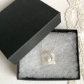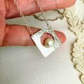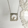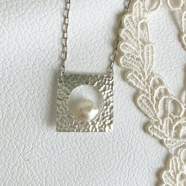 幾何学的な銀板の静けさと、軽やかな着け心地を“余白”として捉え、銀の光が小さな灯のように揺らめくさまをイメージしたネックレスです。