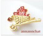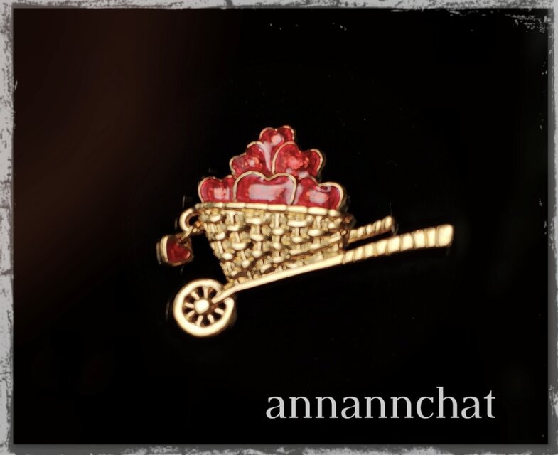 ビンテージ エナメルのハートをたくさん積んだ荷車のピンブローチです。前にゆらゆら揺れるハートがついています。