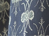 グレー味を帯びた深いグリーンに、リボンのような未知の生物のようなものが漂うファンタジックなお着物地。ミナペルホネンのテキスタイルにもありそうな。北欧テイストのような。