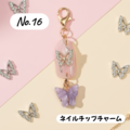 下にはパープルの蝶チャームを合わせ、幻想的で女性らしい世界観に仕上げました。