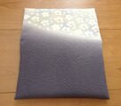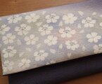 ブルーグレーの落ち着いた色合いに桜が優しく咲いています。内袋は紫の縮緬。大人の雰囲気です。