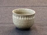 口縁の下に雫形のしのぎを入れました。砂混じりの黒土にマットな釉薬を掛け、グレーに発色しています。土や釉薬の雑味が、微妙な景色を醸し出しています。