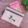 つばめファミリーの春色ダブルファスナーポーチ/フラットポーチ/通帳ポーチ/お薬手帳ポーチ