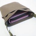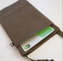 スマホを入れて、ポケットを身体側にして首にかけることを想定して作りましたが、バンドは斜めがけが出来る長さになっています。