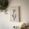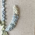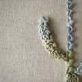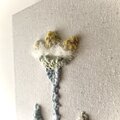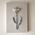 コットンリネン地に羊毛から手紡ぎした糸で刺繍し、温かみのある少しユーモラスなお花のファブリックパネルに仕上げました。