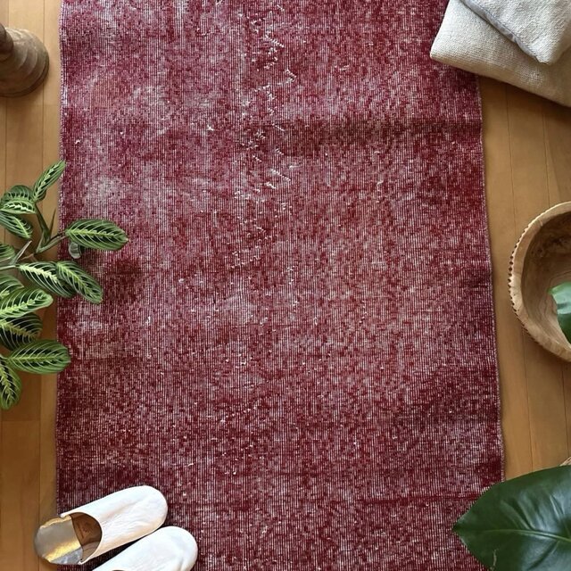 89×189こっくりと深みある赤 ワンカラーラグ トルコヴィンテージラグ