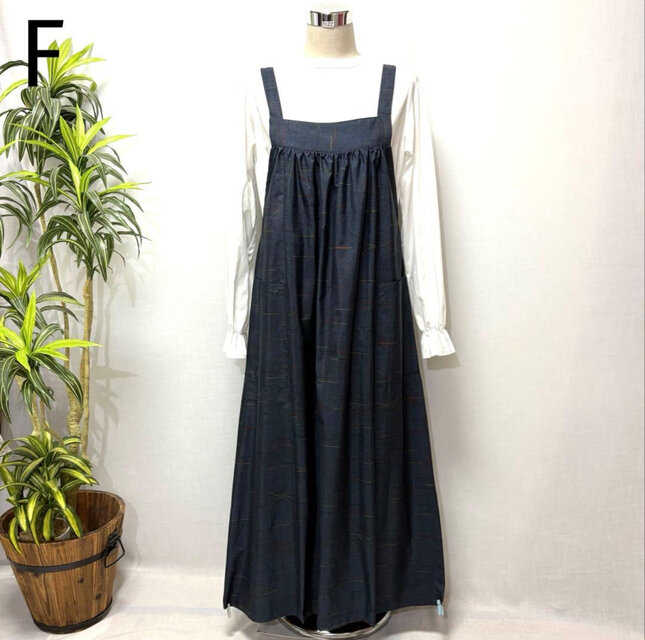 #着物 #着物リメイク #花柄 #ジャンパースカート #ワンピース #大島紬 #ロングワンピース #ミモレ #ゆったり #お出かけ #Lサイズ #フリーサイズ #シンプル #ジャンパードレス