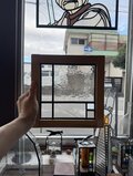 今回の出品に合わせてガラス、ケイムを磨いています。フレームも削り直して蜜蝋ワックスを塗布しています。