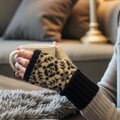 シェットランドウールを使用し北欧柄を編み込んだアームウォーマーです。