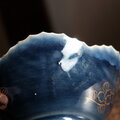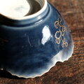 綺麗な瑠璃釉での絵付けの上に金彩での草花の絵。