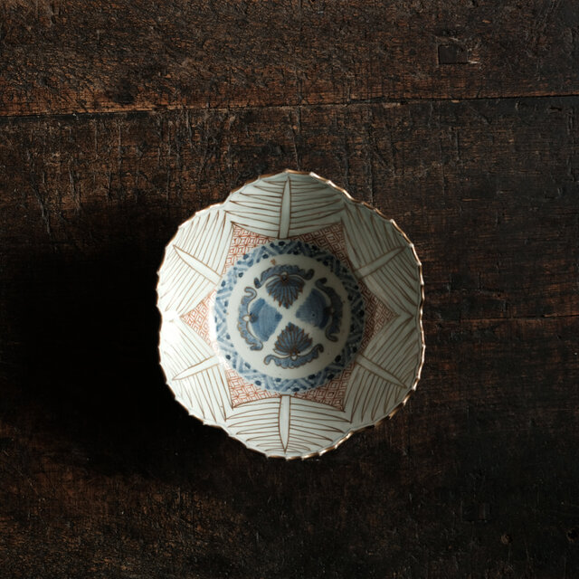 素敵な形状◆側面はブルー 古伊万里 瑠璃釉染錦金彩鉢 骨董・antiques アンティーク 和食器 古民家 古道具 江戸後期