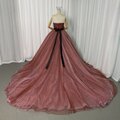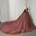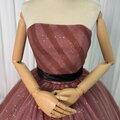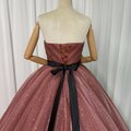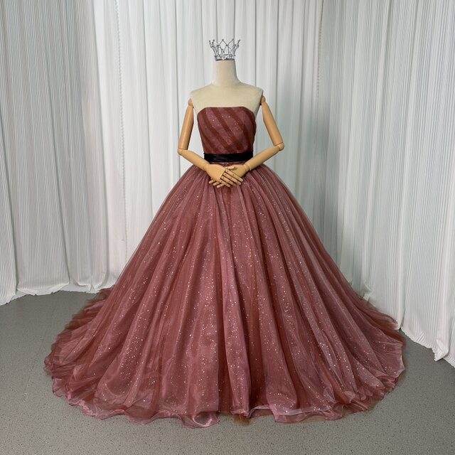 カラードレス テラコッタ色 ベアトップ キラキラチュール サッシュベルト フレアスカート 花嫁 編み上げ