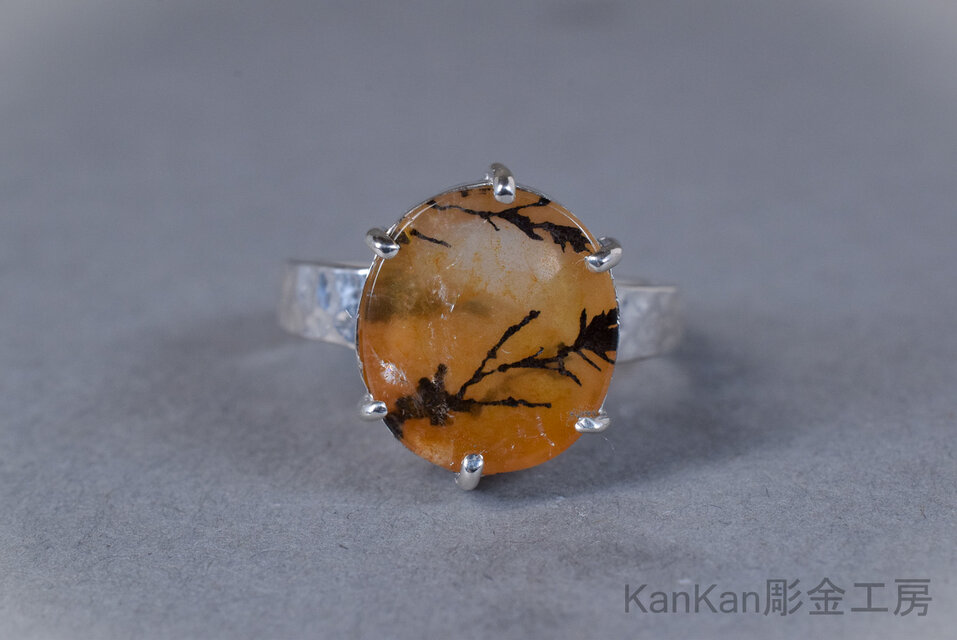 リング腕には全周に槌目を施し、金属の表情に揺らぎを与えました。