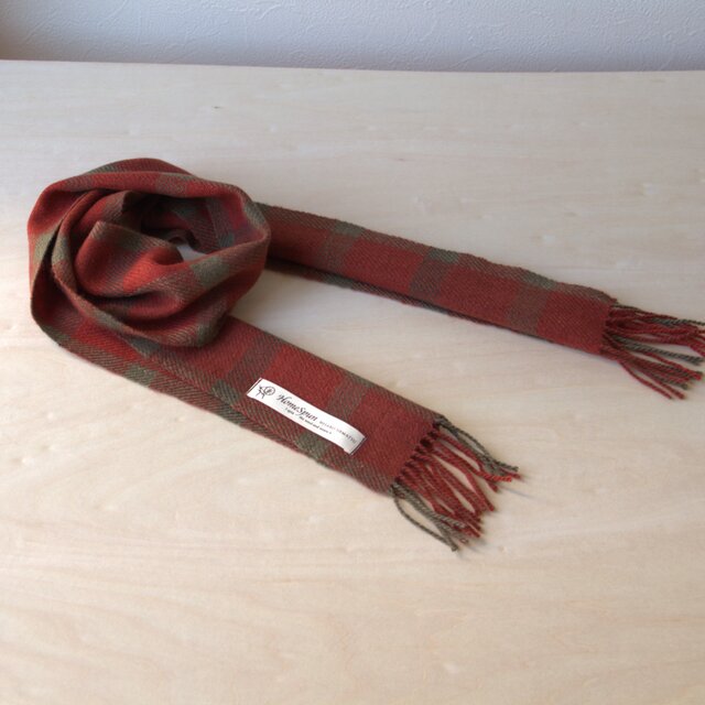 ホームスパン・カシミヤプチマフラー 茜格子