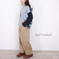 [Coordinate] キャメルコーデュロイとクラシックチェックの裾タックふんわりパンツ