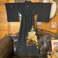黒留袖 着物 リメイク ワンピース ドレス ロング 和洋折衷 洗える 化繊 黄金の総手刺繍・大輪の牡丹と松竹梅 TKW-118