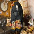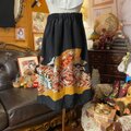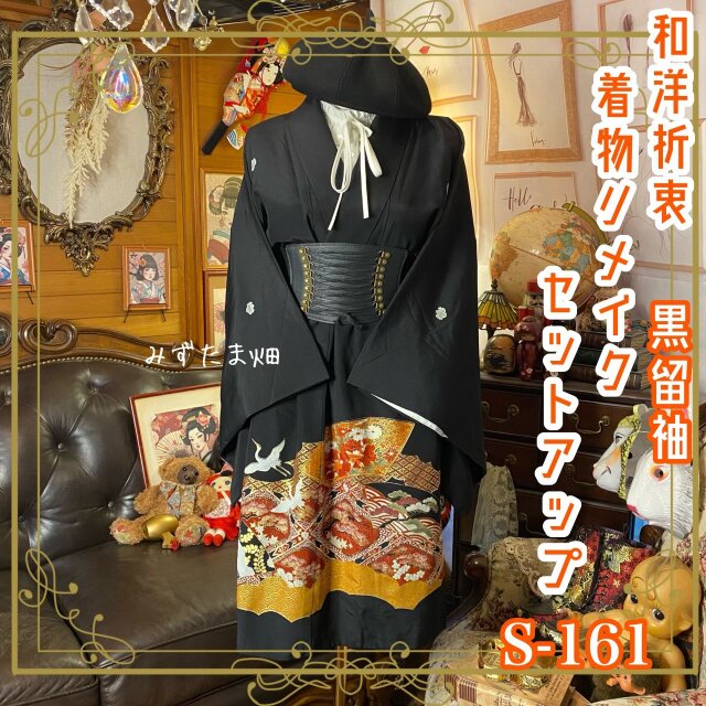 【【訳あり】黒留袖 着物リメイクセットアップ ツーピース 2部式 スカート レトロ 古着 和洋折衷 ハンドメイド 瑞雲に舞い上がる吉祥の鶴 S-161】