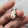 鹿の角を削り込みながら形を整え、淡水真珠を埋め込んだネックレスです。