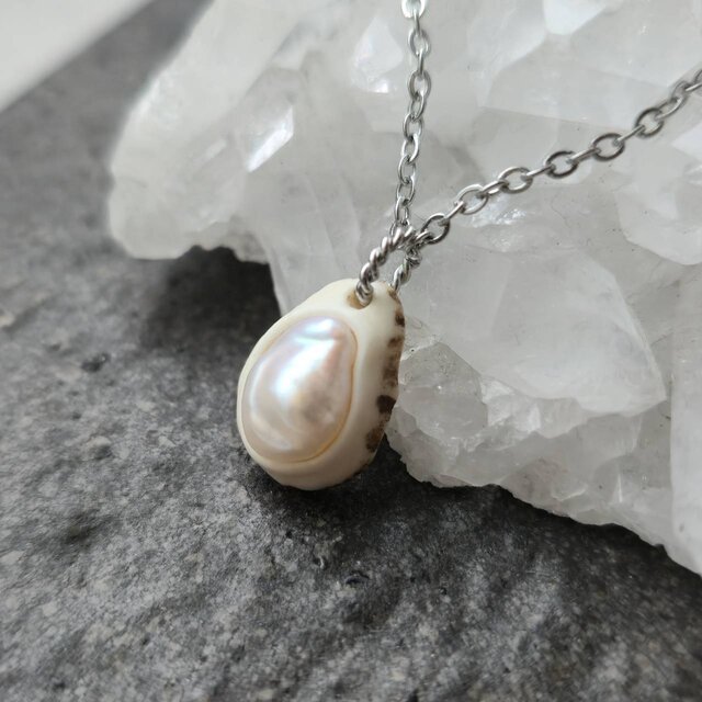 淡水真珠は白を基調に、角度を変えるとピンク〜ブルーの干渉色が走り、光源に対して滑らかに色相が変化します。