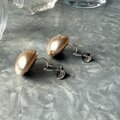 グレージュカラーがレトロシックなフェイクパールイヤリング。