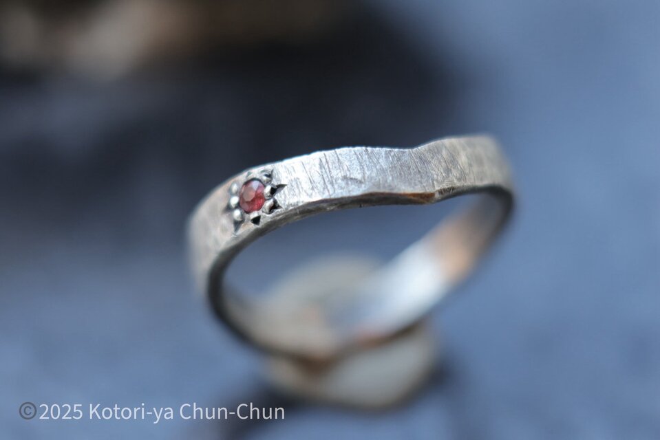 元々は3つ重ねることを前提で作った一点もののリング。【桃ノ字】【金ノ字】とピッタリと合います。