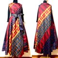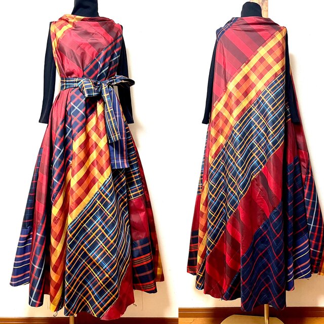 バイヤス地の目で仕立てたフレアー分量たっぷり(3m以上)のワンピースです。