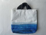 *生成の帆布に布用絵具でペイントをしてから、ミシンでステッチをしています。