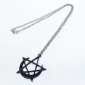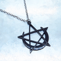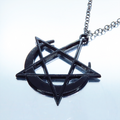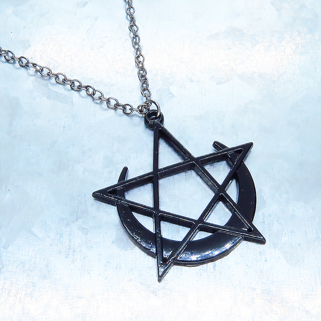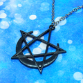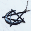 五芒星と三日月を組合せて黒でカラーリングした印象に残るペンダグラムペンダント・ネックレスです