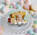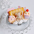 ピルケースにホイップを絞り、くま、ビスケット、