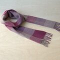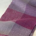 コチニールで染めた紫の濃淡と濃いピンクで大きなチェックに織りました。