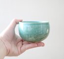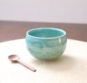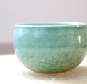 ころんと丸いお湯のみの形に成形後、南国の海のような色彩と細かな貫入、艶やかな光沢が美しいトルコブルーの釉薬をかけて焼き上げました。