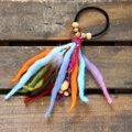 ゴムなので、髪留めやバッグチャーム・キーチャームとして、またお手持ちの革紐などにくくり付けるとネックレスにもなり、アイデア次第で色々とお楽しみいただけるかと思います。