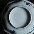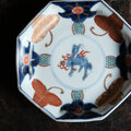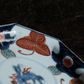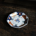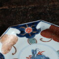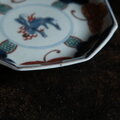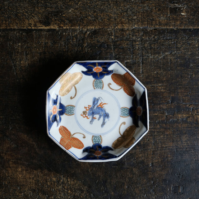 見込み麒麟◆蝶のような花。伊万里 花文錦手金彩八角中皿 骨董/antiques 明治期【i3】