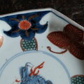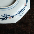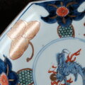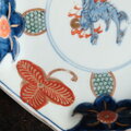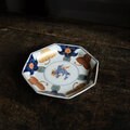 見込み麒麟◆蝶のような花。伊万里 花文錦手金彩八角中皿 骨董/antiques 明治期【i4】