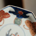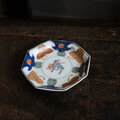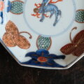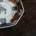 見込み麒麟◆蝶のような花。伊万里 花文錦手金彩八角中皿 骨董/antiques 明治期【i5】