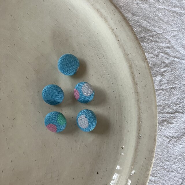 大切にしまっておいた小さな小さな水玉模様の生地でくるみボタンを作りました。こちらは5個セットの販売です。