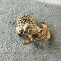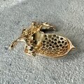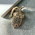 "Golden Acorn"とタイトルのついた、どんぐりとリーフをモチーフにしたブローチ。