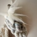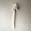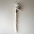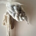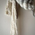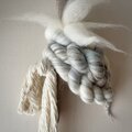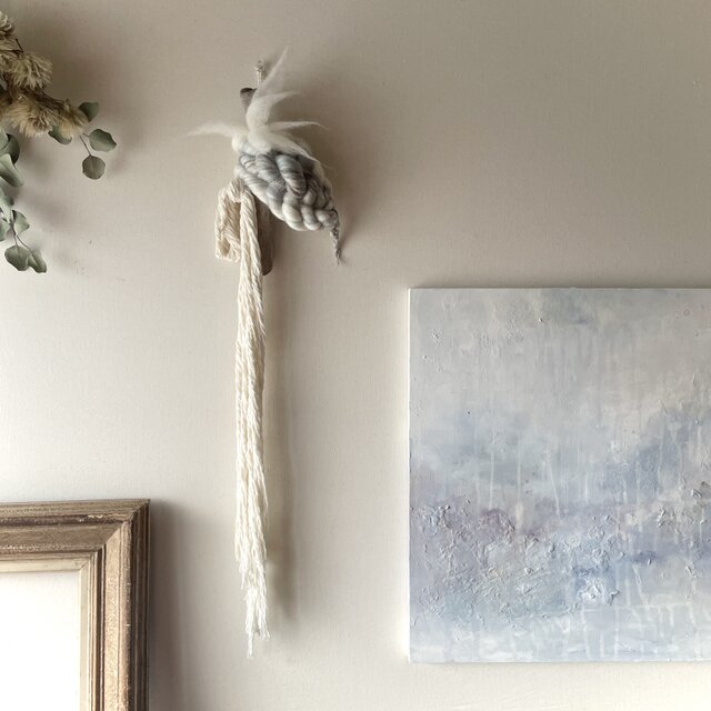 羊毛を何色も組み合わせ撚り、コットンや流木と組み合わせました。