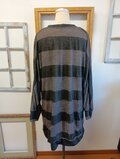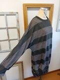 カーキモカのボーダー柄で、薄手の透け感あるシースルーなニット。中にインナー着て重ね着するといいです。素材はストレッチでポリエステルニット素材です。