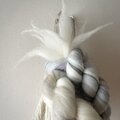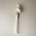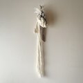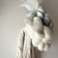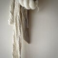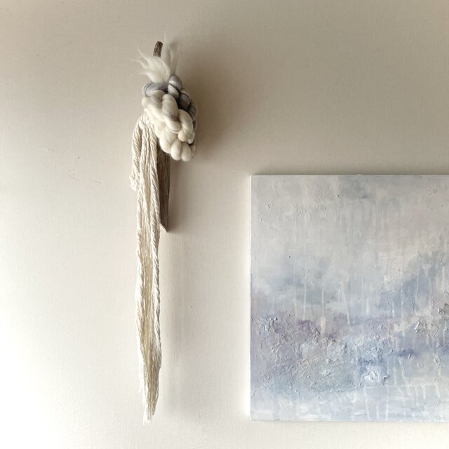 羊毛を何色も組み合わせ撚り、コットンや流木と組み合わせました。