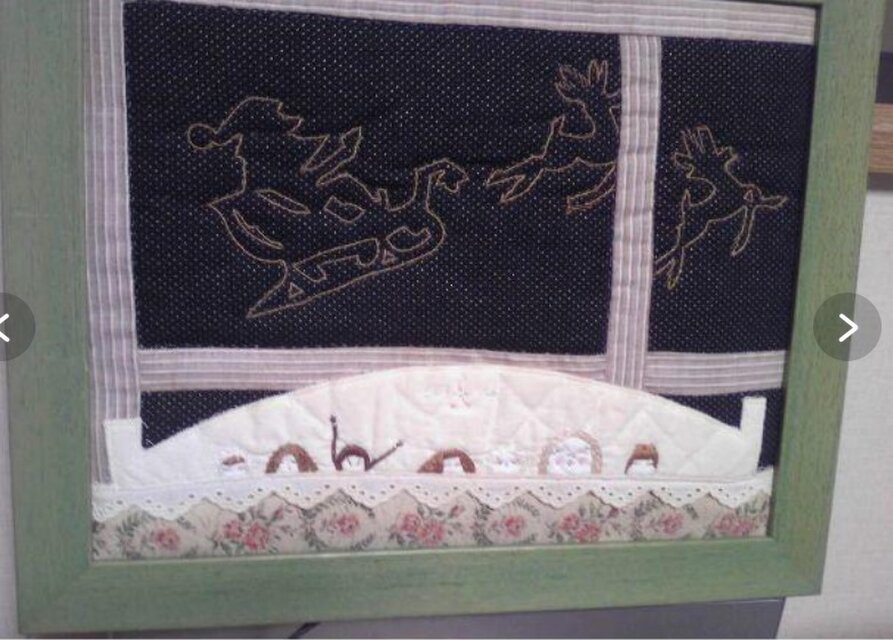 To create this artwork, follow the previous instructions provided for making an original handmade frame. Incorporate the described scene by painting the elements accordingly, adding the embroidered faces of the seven adorable babies.
