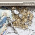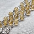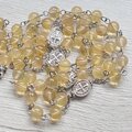 珍しいゴールデンフローライトを使用したロザリオ、優しい雰囲気の黄色です。