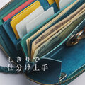 ファスナーを開けるとガバッとひらいて全てが瞬時に見渡せる、ワンアクションフルオープン構造。わずか1秒で、カード/お札/小銭にアクセス!見やすく出し入れしやすい超時短!お支払い時にモタつかない、小さく薄い長財布です。