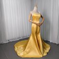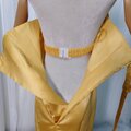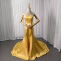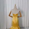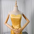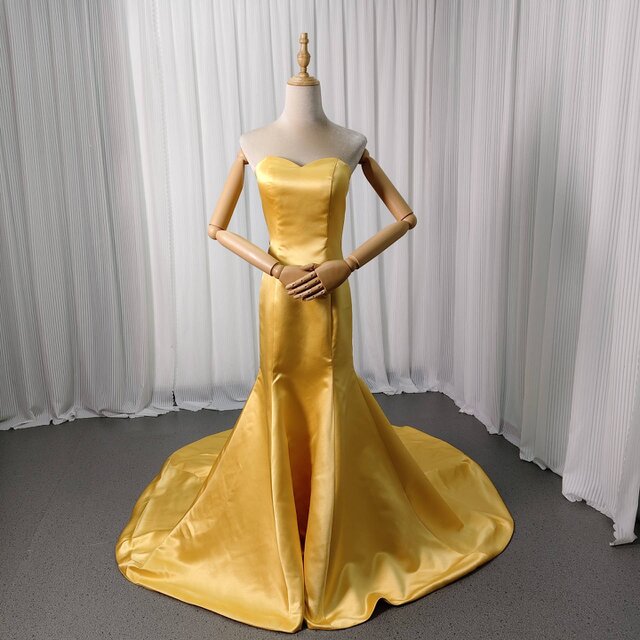 カラードレス イエロー ベアトップ マーメイドライン 編み上げ 光沢サテン ロングトレーン 二次会