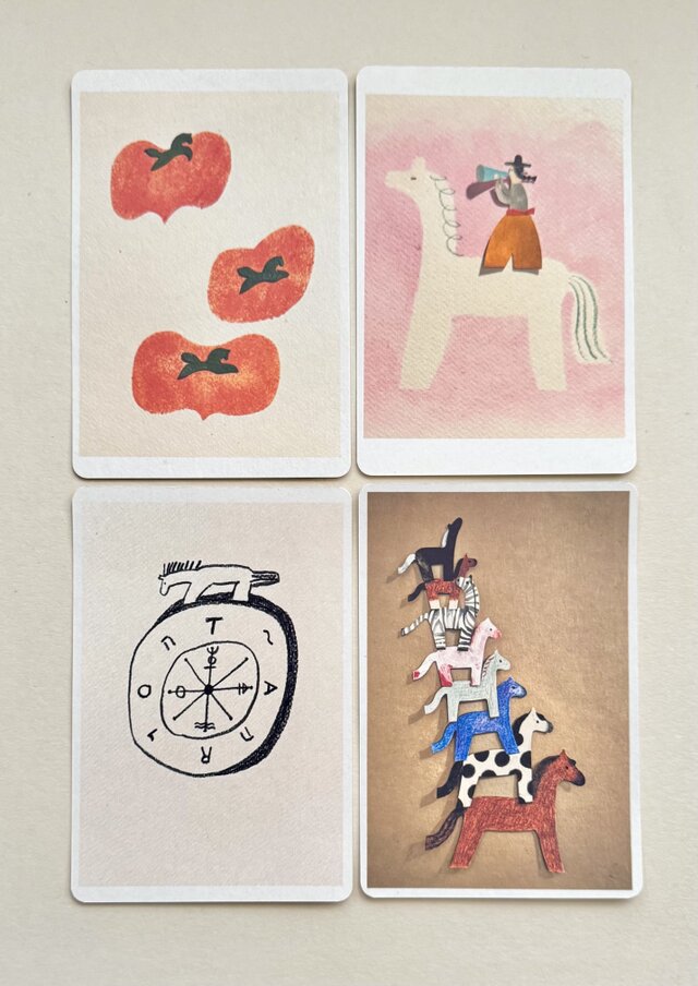 一枚、一枚 魅入ってしまいます♡ ほんとうに見たことない世界ですよ 視線の先、道の奥、草むらのねっこ、何があるんだろう 手綱をひいている人、お馬さん見ている世界が違って、この先には何が?? ねこさんの動きも気になるなあ 物語はカードを手に取った私に預けられたようで わくわくどきどきです