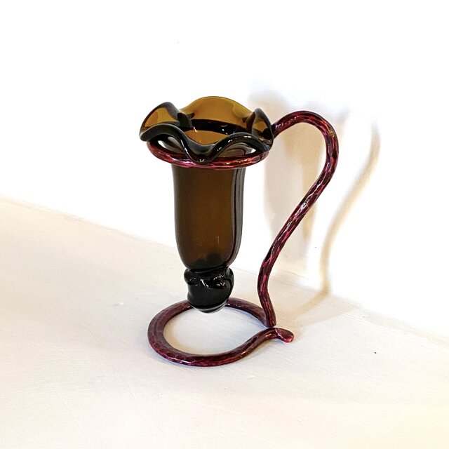 キャンディ型ガラス花器(茶色ガラス×赤茶色アーム)