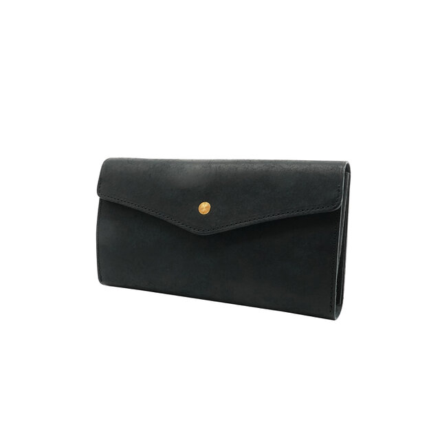 ・MAX収納と適量収納は二つのホックで調整することが可能で、フラップの長さが足りなかったり、長すぎたりしません。MAX収納未満での上部ホック留めは小銭が溢れる場合がございますので、ご注意ください。