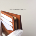 お札はカードポケットの背面に二つ折りで収納でき、外から見えにくいサイズ感に仕上げています。